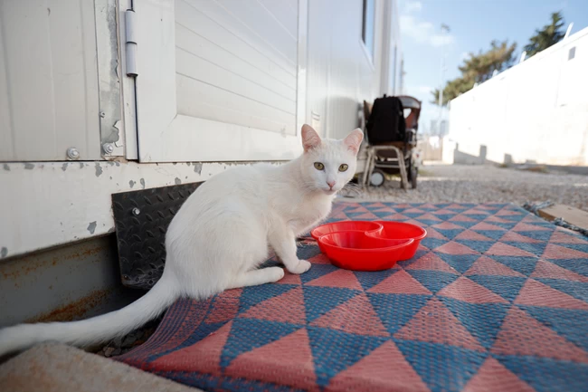 "Ο σύζυγός μου, πριν από λίγους μήνες έφυγε με τον ένα μας γιο για τη Γερμανία και σε λίγες μέρες θα τον ακολουθήσουμε κι εμείς. Ήταν αδιανόητο να φύγουμε και να αφήσουμε πίσω μας τα υπόλοιπα μέλη της οικογένειάς μας που είναι οι γάτες μας. Αγαπάμε τα ζώα, πάντα είχαμε γάτες στη Συρία και δεν θα μπορούσαμε να αποχωριστούμε τα άλλα μας "παιδιά"", αναφέρει η Ταγρίντ σφίγγοντας στην αγκαλιά της τη γατομαμά Στέλλα. "Αυτήν πάντως", λέει ο διοικητής της δομής, "θα την πάρω εγώ σπίτι μου"!